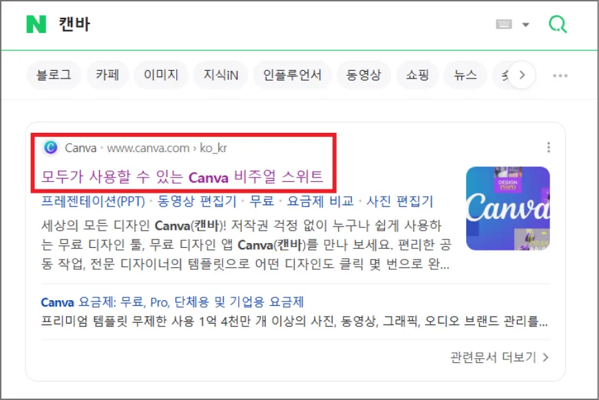 1) 구글이나 네이버 창을 열어 "캔바"를 검색합니다.