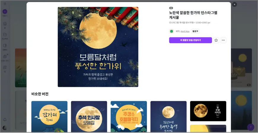 2) 잠시 후 추천 디자인 미리보기가 여러 개 나옵니다. 마음에 드는 것을 눌러 나타나는 화면에서 이 템플릿 맞춤 편집하기을 선택합니다.