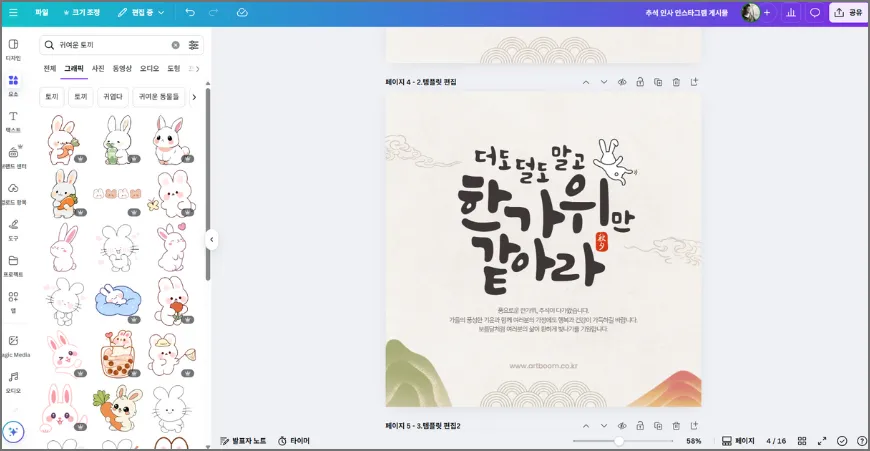 4) 편집기에서 문구, 색, 사진을 바꿔주세요.